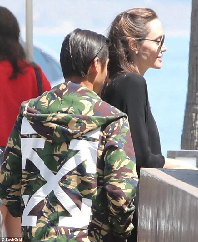 (NLĐO) - Angelina Jolie và con trai nuôi Pax Thiên, 13 tuổi, cùng thưởng thức bữa trưa tại nhà hàng Pacific Ocean ở Los Angeles - Mỹ.